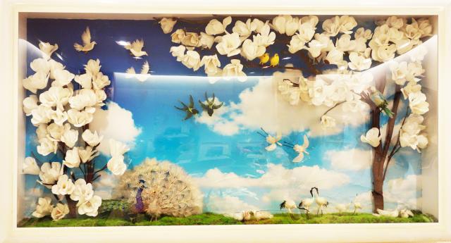 丝网花作品《莺歌燕舞》曾在中华艺术宫展出