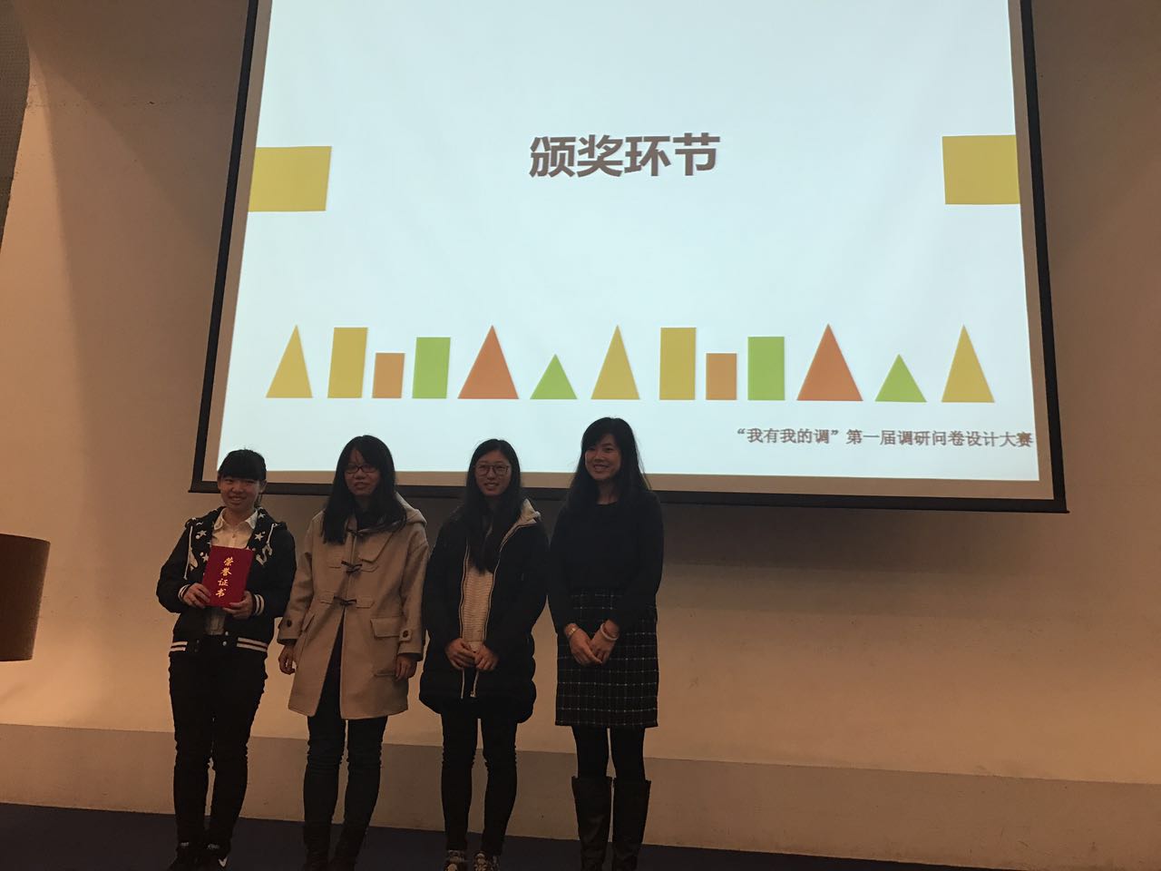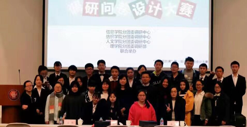 12月20号下午,由信息学院、纺织学院、人文学院以及理学院联合举办的“我有我的调”第一届调研问卷设计大赛决赛在第二报告厅落幕。校团委副书记沈洁、纺织学院分团委书记张强、信息学院分团委书记李丽担任评委老师,来自各学院百余学生参加活动。