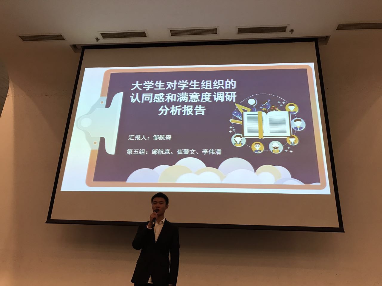 前期活动回顾后,校团委副书记沈洁老师讲话,她强调了调研的重要性,呼吁大家多了解调研,并表示很期待这次比赛。随后,7组参赛选手按照次序依次进行了汇报展示。本次大赛选手们选题新颖、分析深入、展示精彩,调研主题涉及大学生消费观念、人大代表选举、提笔忘字现象、大学生睡眠状况、学生组织的认同感和满意度、大学生学习状态、大学生对排球的看法等多方面,采用了交叉分析、比较分析等多种分析方法,并使用柱状图、饼状图、雷达图等很好地展示了调研分析结果,调研既有针对性、现实性,又有教育性和启示性。