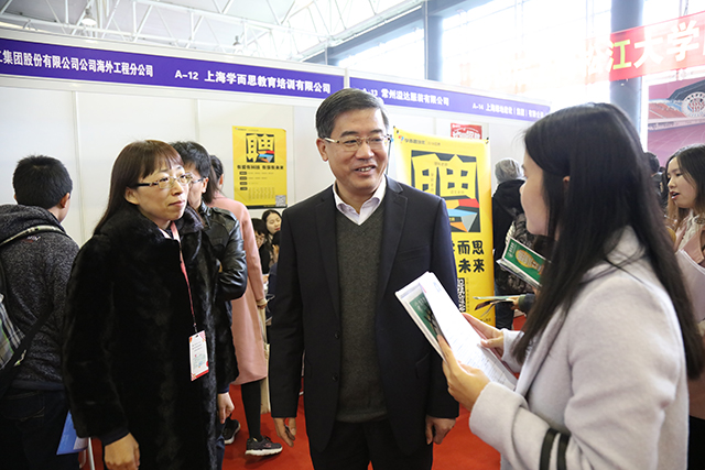 11月22日,2018届上海松江大学园区七校毕业生联合招聘会在我校松江校区举行。校党委书记朱民、大学园区各高校领导及上海市教委相关负责人来到招聘会现场,亲切慰问参会用人单位代表、现场工作人员,并与毕业生进行交流。