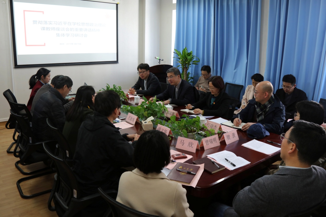 3月18日,习近平总书记主持召开学校思想政治理论课教师座谈会并发表重要讲话。为认真贯彻落实习近平总书记重要讲话精神,3月19日下午,党委书记朱民走进马克思主义学院,与学院党政班子成员、马克思主义理论学科带头人及一线思政课教师代表集体学习研讨,共话思政课改革创新与教师队伍建设。党委副书记刘淑慧及相关部门负责人参加学习研讨会。集体学习由马克思主义学院党总支书记、院长王治东主持。