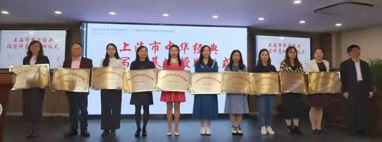 11月19日,上海市中华经典诵写讲基地揭牌仪式在市北中学举行,我校参会并获得“上海市中华经典诵写讲基地”称号。
