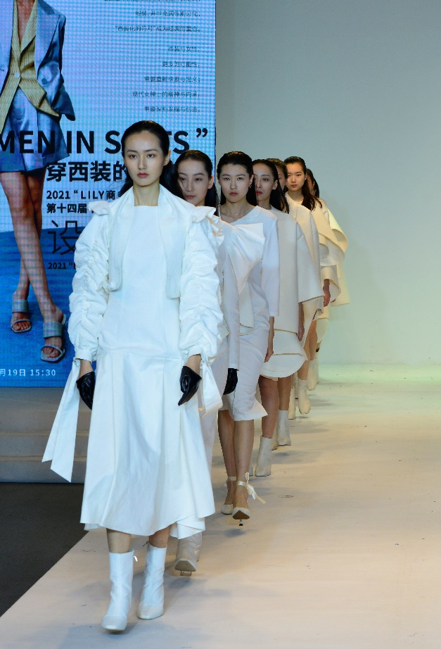 4月19日下午,2021“Lily商务时装•东华杯”第十四届中国大学生服装立体裁剪设计大赛决赛在延安路校区逸夫楼二楼表演厅精彩上演,全国26所院校服装设计新锐联合诠释“WOMEN IN SUITS”。党委副书记崔运花以及服装与艺术设计学院相关负责人等出席本次活动。我校李懿、李汶的作品Circe斩获立裁设计金奖。