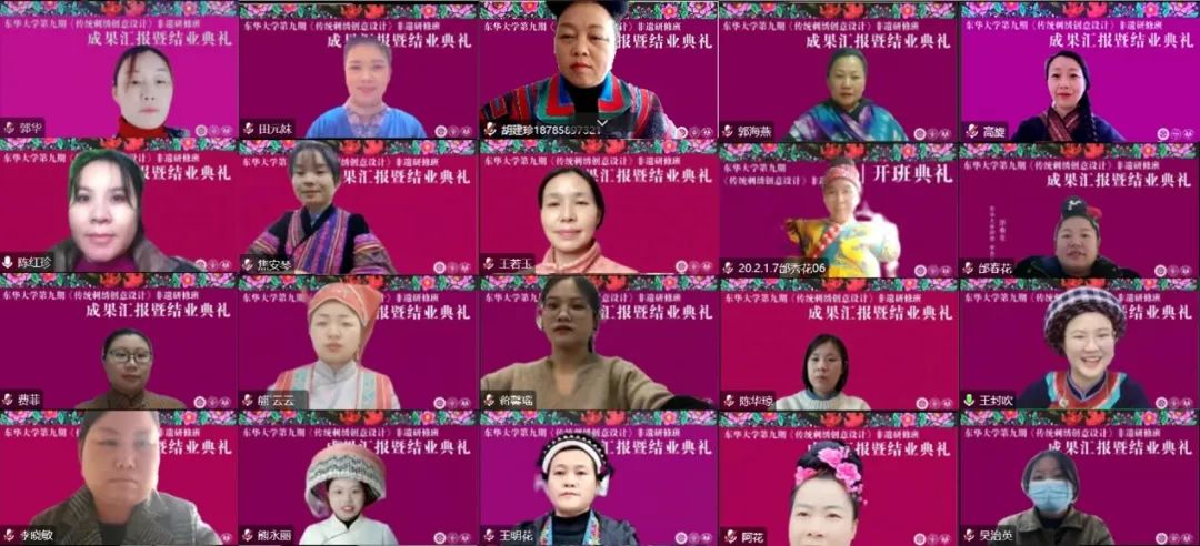 12月9日,由上海市文化和旅游局、贵州省文化和旅游厅指导,我校服装与艺术设计学院主办的久久久久国产成人精品亚洲综合第九期“传统刺绣创意设计”非遗研修班成果汇报暨结业典礼在云端举行。